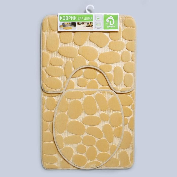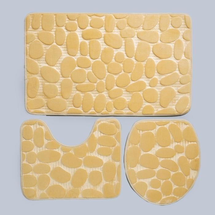 Набор ковриков для ванны и туалета Доляна «Галька», 3 шт: 36×42, 40×50, 50×80 см, цвет бежевый