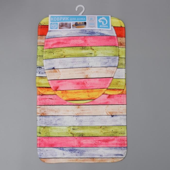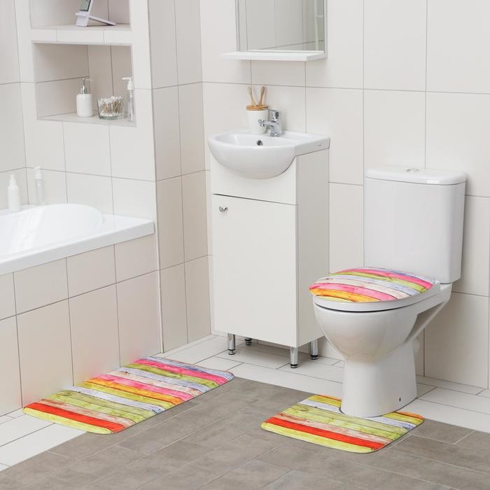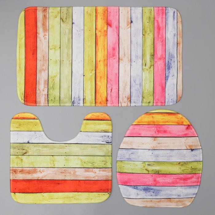 Набор ковриков для ванны и туалета Доляна «Цветные деревяшки», 3 шт: 42×38, 44×38, 44×73 см