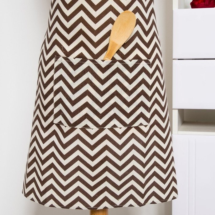 Набор Доляна фартук/прихватка/варежка, Зигзаг коричневый, 100%пэ, рогожка 200 гр/м