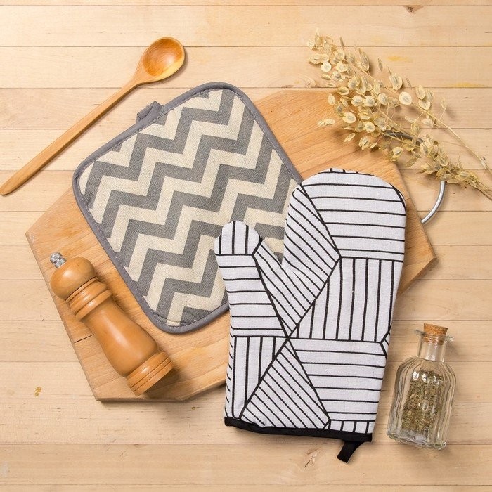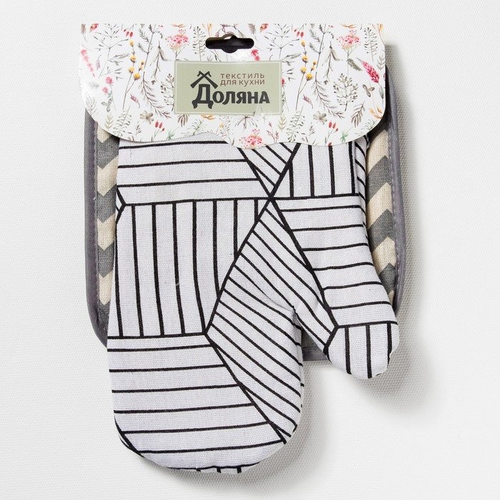 Набор Доляна, варежка+прихватка Тренд бел/Зигзаг сер, 100%пэ, рогожка 200 гр/м
