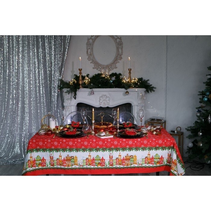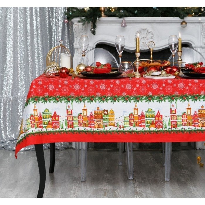 Скатерть Доляна «Новый год: Волшебный город» 180×149 см, 100% хлопок, 164 г/м2