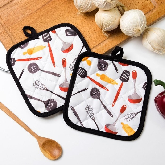 Кухонный набор Доляна «Поварешка», прихватка 16×16 см — 2 шт