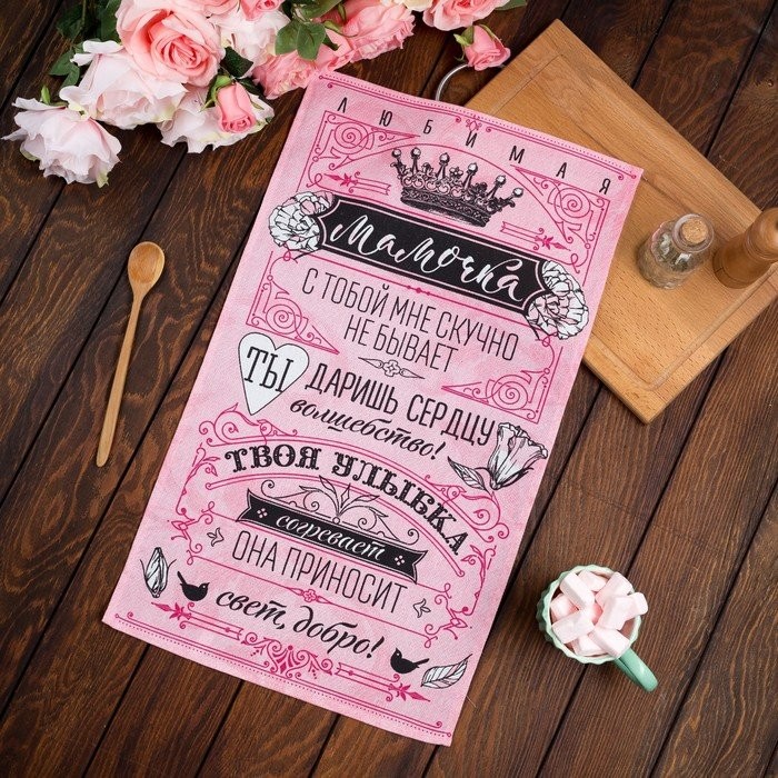 Полотенце кухонное Доляна «Мамочка» 34×60 см, рогожка, 100% хлопок 160 гр/м