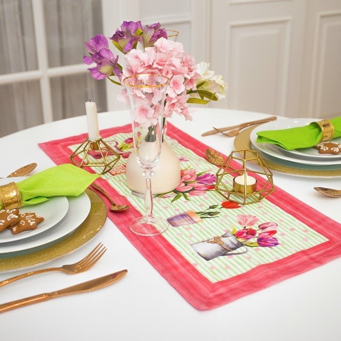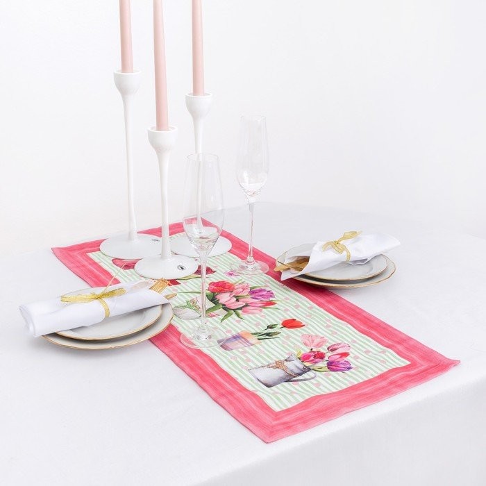 Дорожка на стол «Этель» Тюльпаны 30×70 см, 100% хл, саржа 190 гр/м2