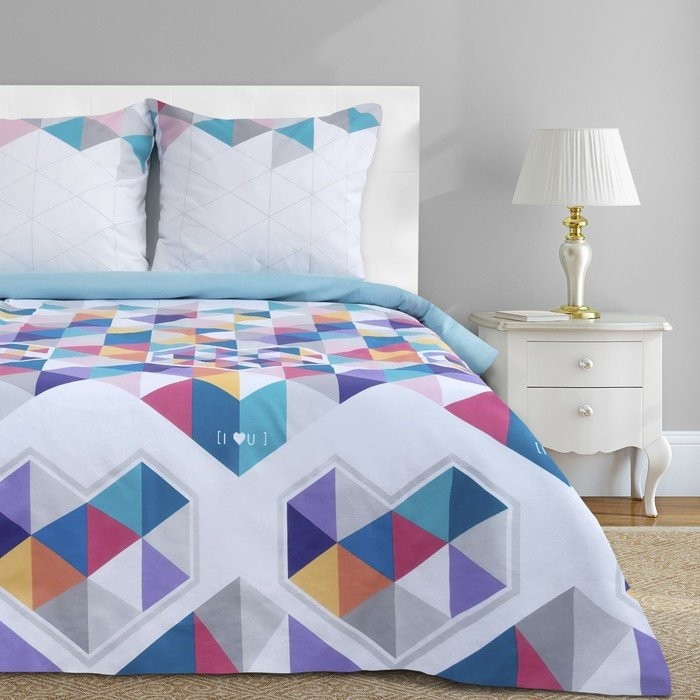 Постельное бельё «Этель» евро Геометрия любви 200×217 см, 240*220 см, 70×70 — 2 шт, бязь