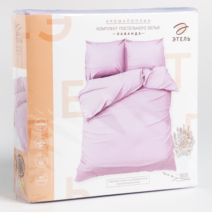 Постельное бельё «Этель» евро Арома Поплин 200×210 см, 240×220 см, 50×70 см — 2 шт., Лаванда, 125 г/м², 100% хл