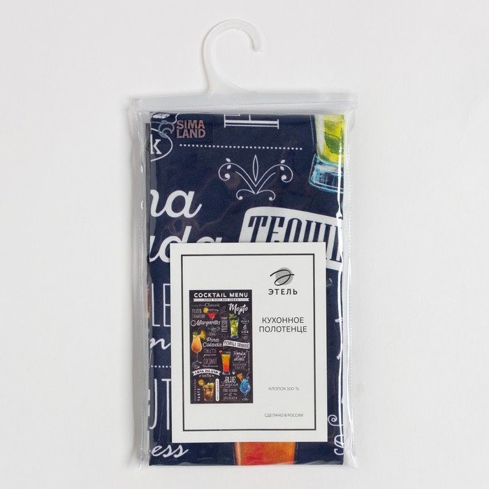 Полотенце «Этель» Cocktail menu 40×73 см, 100% хл, саржа 190 гр/м2