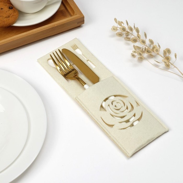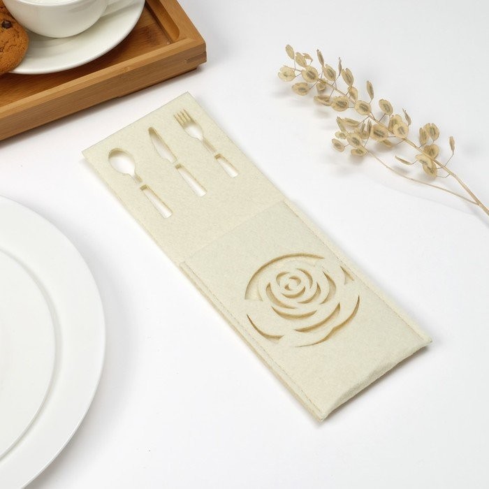 Конверт для столовых приборов Доляна"Роза» цвет молочный,9 х 25см, 100% п/э, фетр