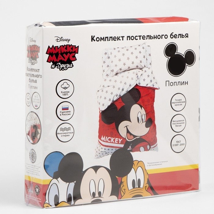 Постельное бельё 1,5 сп «Микки Маус» 143×215 см, 150×214 см, 50×70 см -1 шт., поплин 125 г/м2