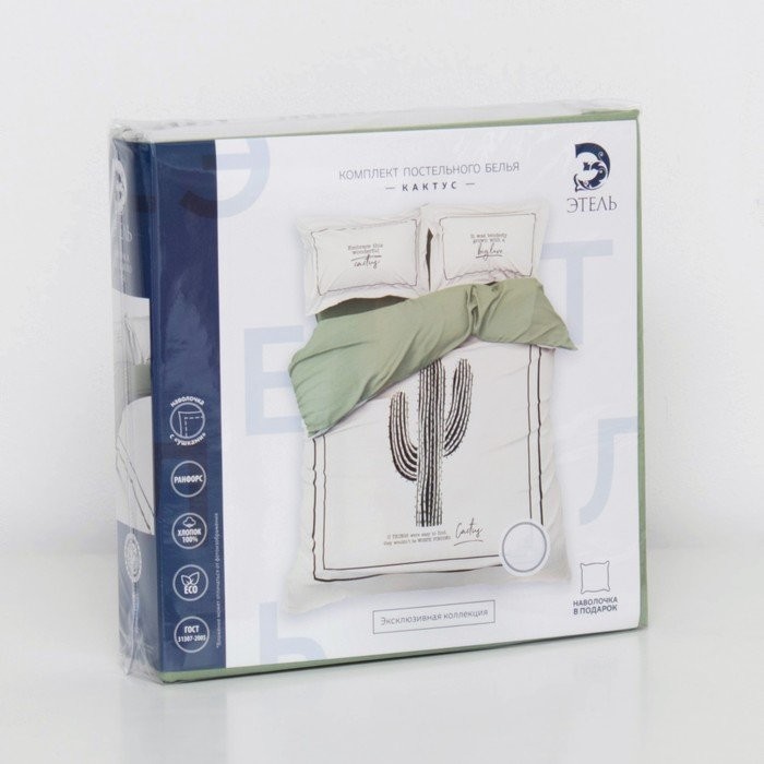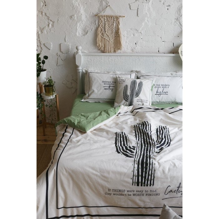 Постельное бельё «Этель» 2 сп Кактус 175×215 см, 200×220 см, 50×70+3 см — 2 шт