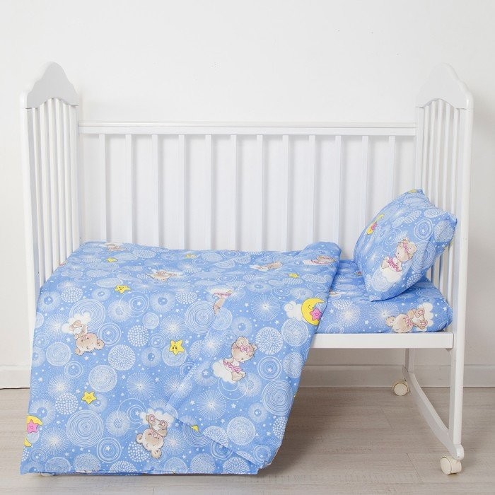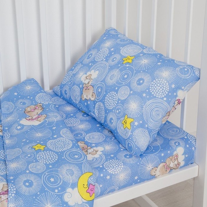 Постельное бельё детский «Мишки на облаках», цвет голубой, 112×147, 100×150, 40×60