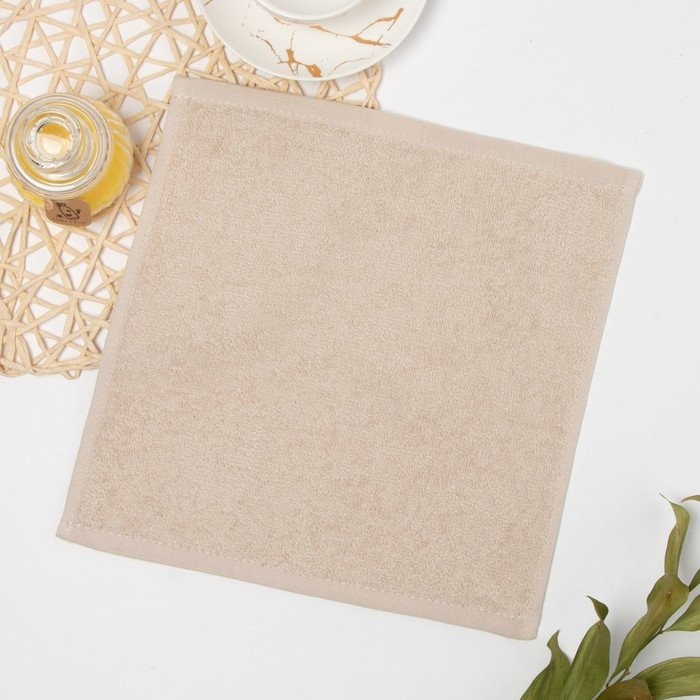 Полотенце махровое 30×30 см, кремовый-МИКС, хлопок 100%