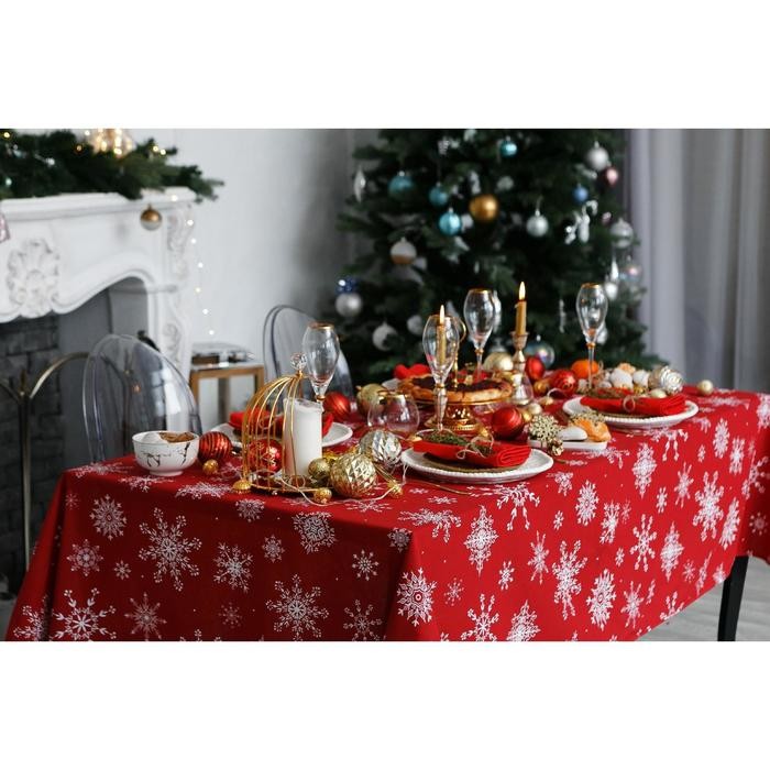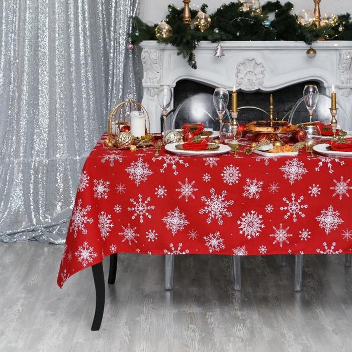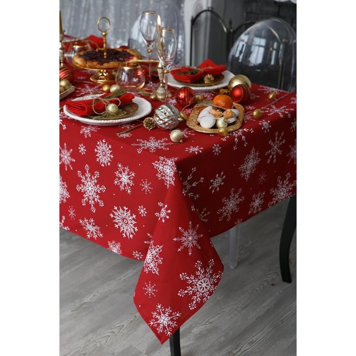 Скатерть Доляна «Новый год: Белые снежинки» 110×149 см, 100% хлопок, 164 г/м2