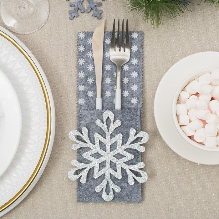 Конверт для столовых предметов «Снежинка» 8×22 см, 100% п/э, фетр