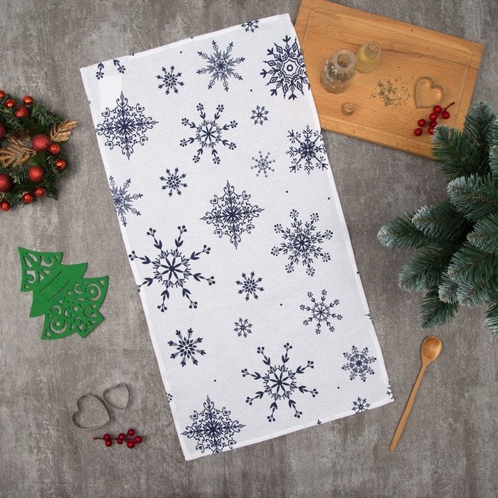 Полотенце «Доляна» Синие снежинки 40×70 см, 100% хлопок, 164 г/м2