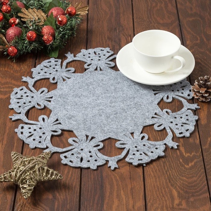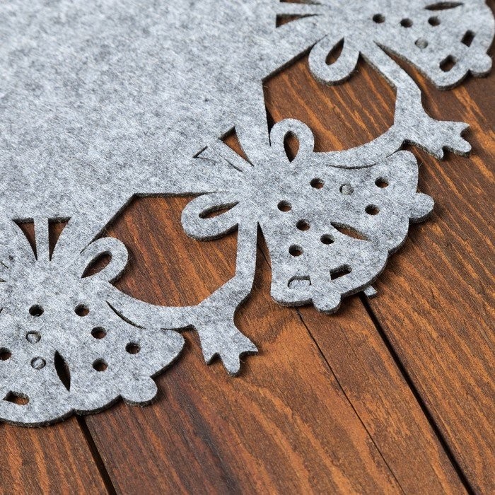 Салфетка декоративная Доляна «Колокольчики», цв, серый,d 30 см, фетр