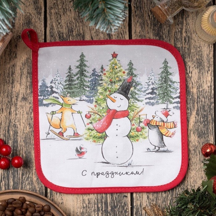 Прихватка «С праздником» 19х19см,100% х/л,ватин 250г/м2