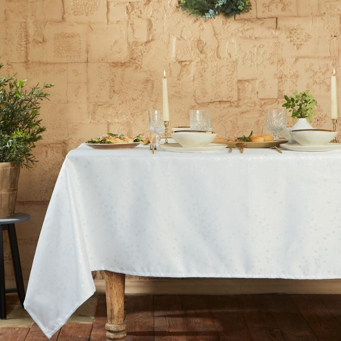 Скатерть Этель «Серебряные звезды» цв.белый, 142*220 +/-3 см, 115 ±10 гр,100% п/э