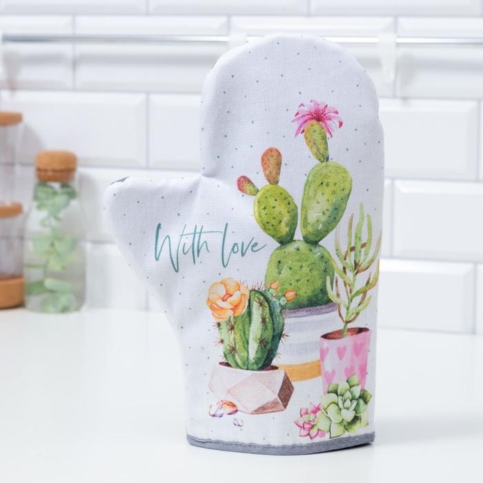 Варежка-прихватка «With love» 20х28см, саржа, 100% х/л, ватин 250г/м2