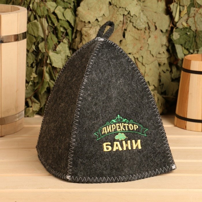 • банная шапка с вышивкой «Директор бани»;