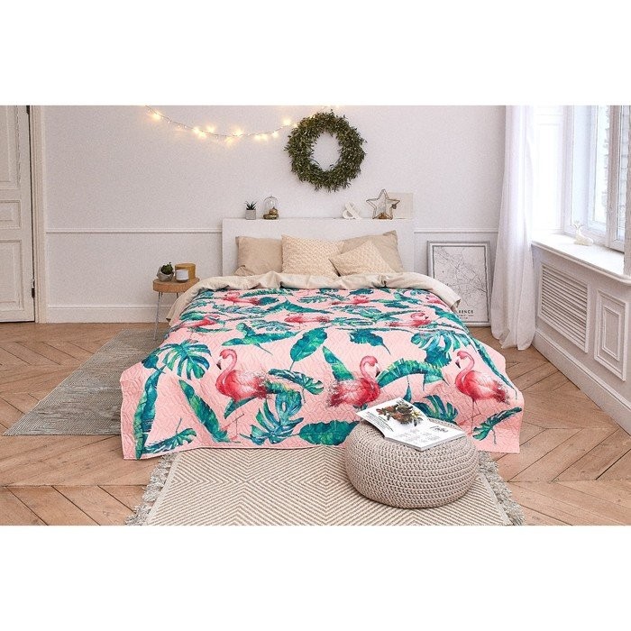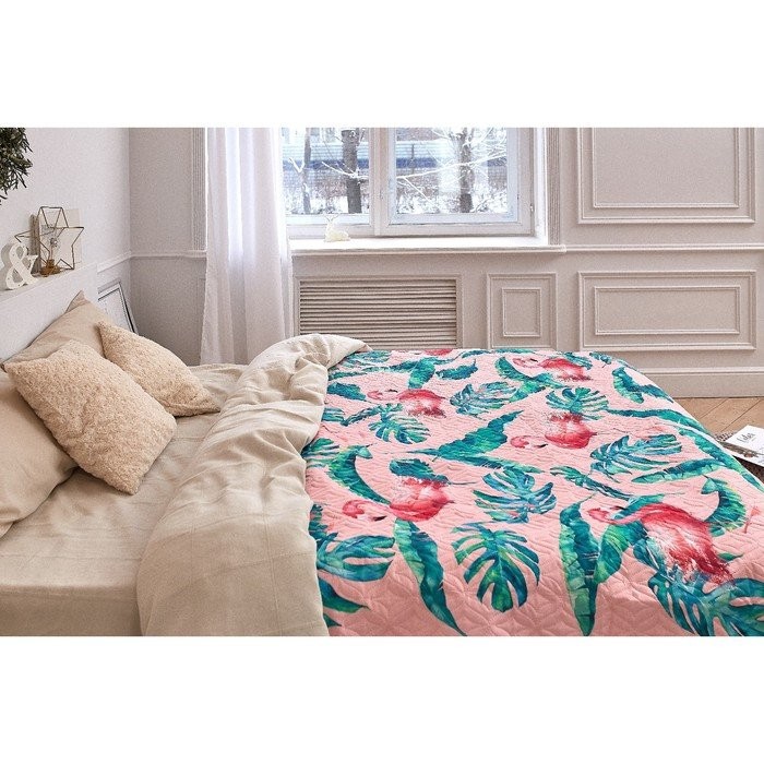 Покрывало «Этель» 2 сп Tropical flamingo, 175*210±2 см, микрофибра