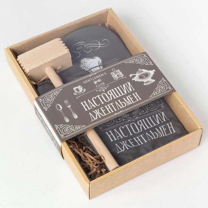 Кухонный набор «Джентльмен»,варежка-прихватка 20х28см, молоток деревянный