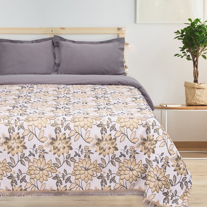 Покрывало гобеленовое Этель «Роскошь» с бахромой, бежевый, 240х200см, п/э 80%, хл 20% (450 г/м2)