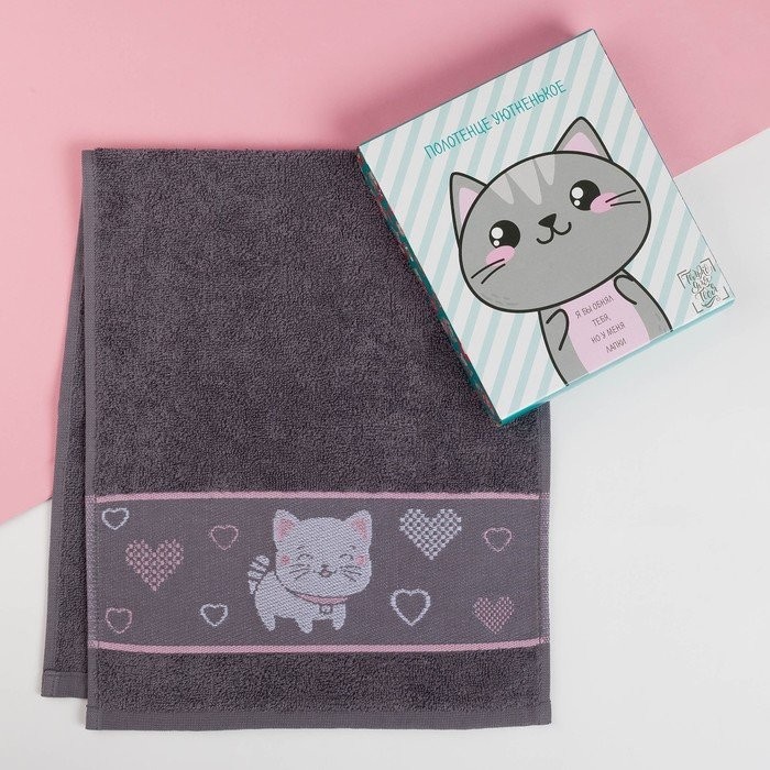 Полотенце махровое «Котик» 30×70 см 100% хлопок, 370гр/м2