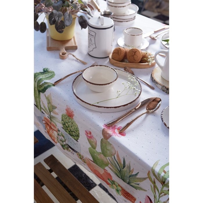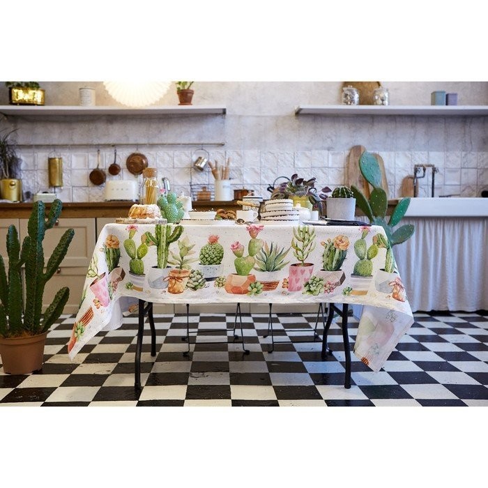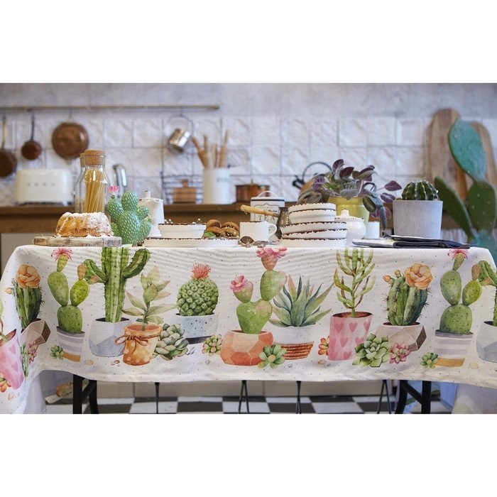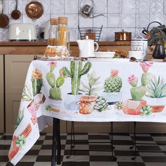 Скатерть Этель «Кактусы» 180×147 см, 100% хл, рогожка 160 гр/м2