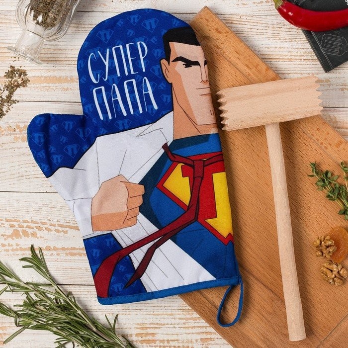 Кухонный набор «Супер папа»,варежка-прихватка 20х28см, молоток деревянный