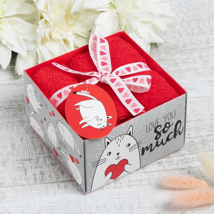 Набор махровых полотенец «Love you so mush» 30×30 см — 3 шт, хлопок 340гр/м2