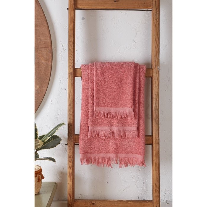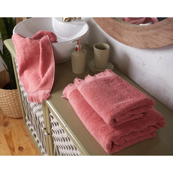 Полотенце махровое Love Life Fringe 70*130 пыльный розовый,100% хлопок,360 г/м2