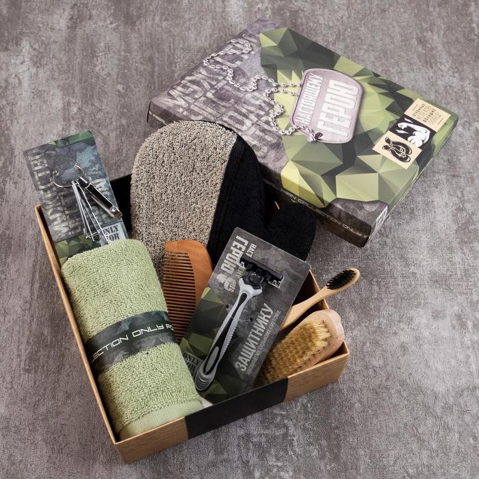 Набор подарочный «Настоящему герою» полотенце и акс (7 предметов)