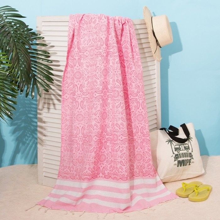 Полотенце для ванны Пештемаль Этель «Персия» 90х170см, 150г/м,80% хл, 20% п/э, розовый