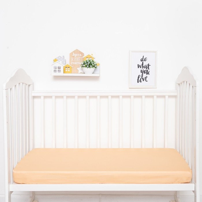 Простыня на резинке Крошка Я 60×120+20 см, цвет коралловый, 100% хлопок