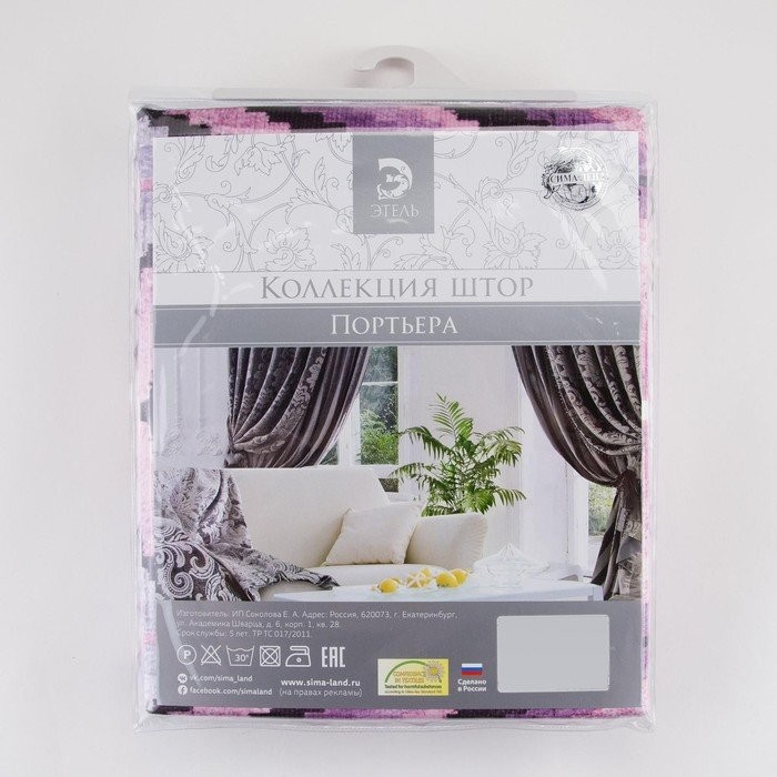 Штора портьерная Этель «Памир» 230×260 см, цвет фиолетовый, 100% полиэстер, блэкаут
