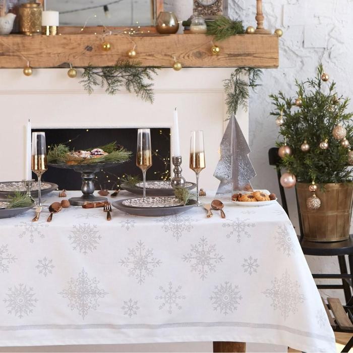 Скатерть «Этель» Серебряные снежинки 149х250см, 100%хл, 190 г/м2