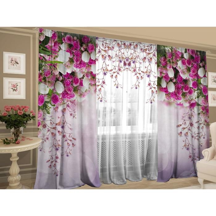 Комплект штор Баланс цветов шторы (147х267см-2 шт), тюль (147х267см), габардин, пэ 100%