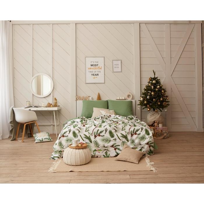 Постельное белье «Этель» 2 сп Еловые ветви 175*215 см, 200*220 см, 70*70 см — 2 шт