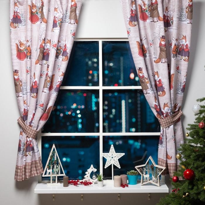 Комплект штор д/кухни с подхватами «Winter holidays» 145х180см-2 шт., габардин