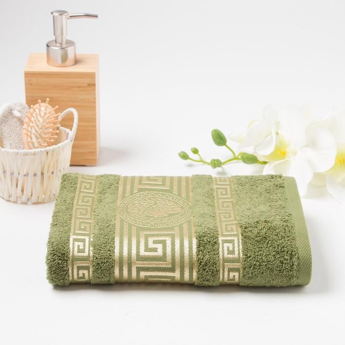 Полотенце махровое жаккардовое Афина 70×140 см, оливковый, хлопок 100%, 450г/м2