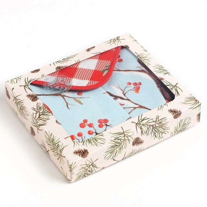 Набор подарочный «Этель» Winter birds, фартук, полотенце, прихватка