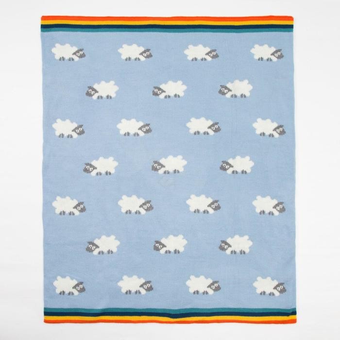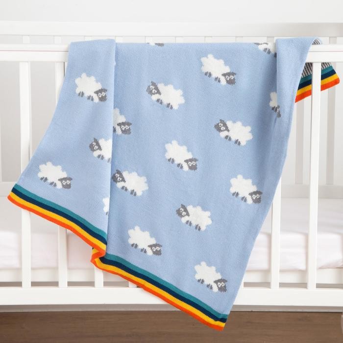 Плед вязаный Крошка Я «Овечки» цв. голубой, 80*100 см, 100% хлопок