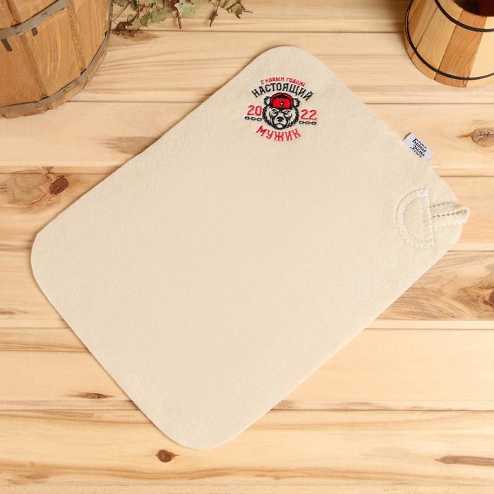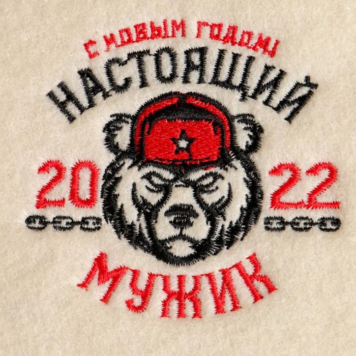 Коврик банный с вышивкой «С Новым Годом! Настоящий мужик (медведь)»
