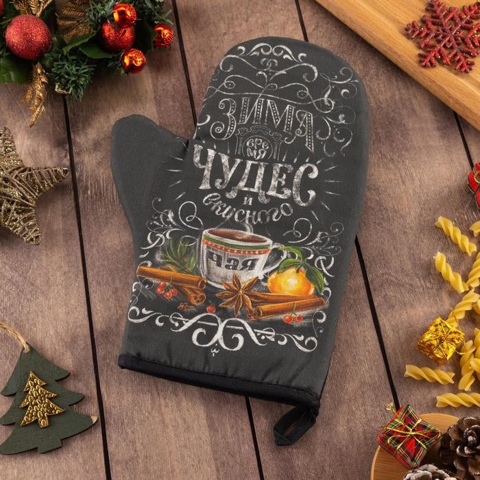 Варежка-прихватка «Зима время чудес» 20х28см, саржа, 100% х/л, ватин 250г/м2