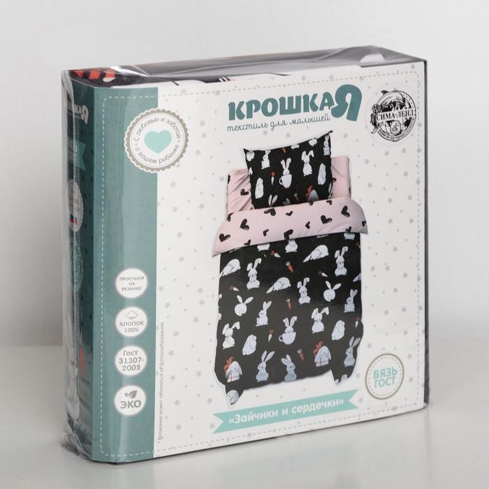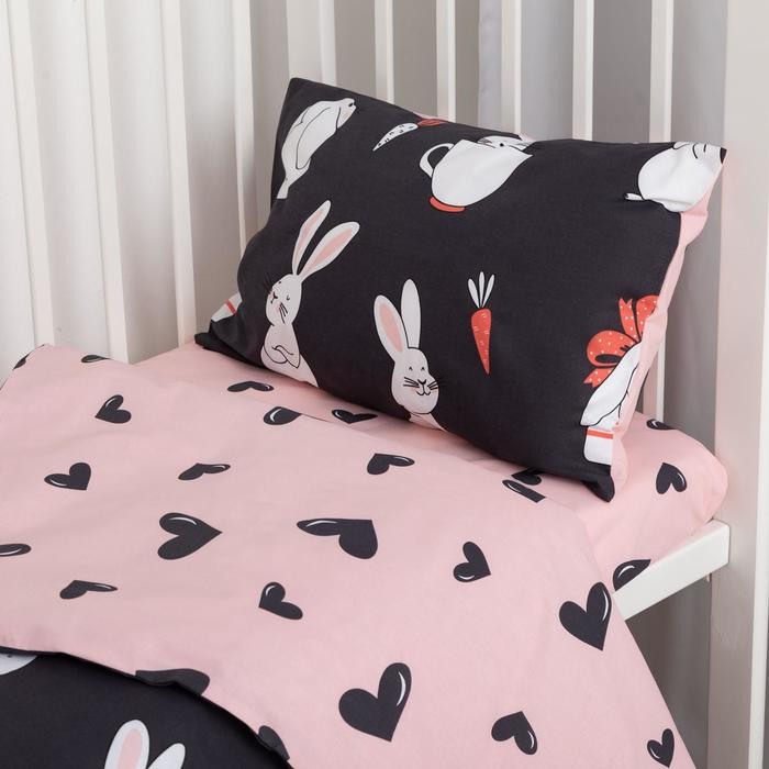 Постельное бельё детское Крошка Я «Зайчики» и сердечки», 147×112 см, 60×120 + 20 см, 40×60 см