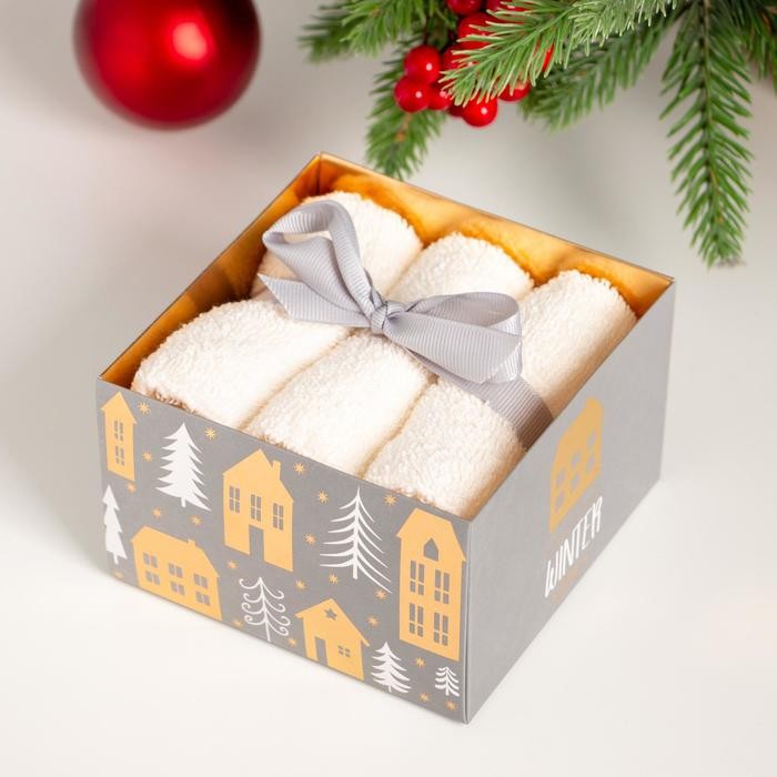 Набор махровых полотенец «Winter» 30×30 см — 3 шт, хлопок 340гр/м2