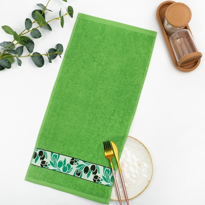Полотенце 30*60 см, Оливки, зеленый, 340 гр/м, махра, хл
