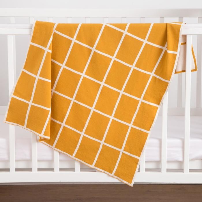Плед вязаный Крошка Я «Клетка» цвет жёлтый, 80×100 см