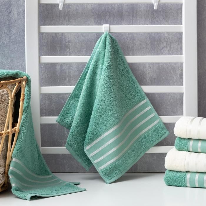 Полотенце махровое «Полоски» зелёное 30×70 см, 100% хл, 370гр/м2